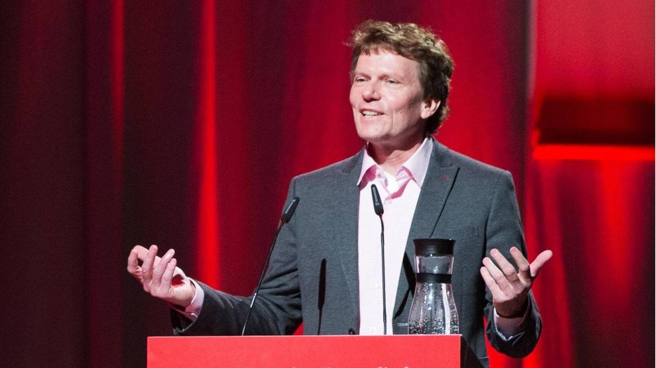 Der Soziologe Prof. Dr. Hartmut Rosa bei einem Vortrag auf dem Evangelischen Kirchentag 2015 in Stuttgart.© imago / Wuechner/Eibner-Pressefoto