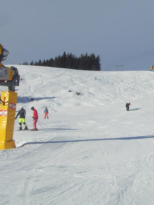 Auf gute Schneeverhältnisse müssen Skifans in den bayerischen Alpen immer häufiger verzichten. Wegen des Klimawandels gibt es statt schneebedeckter Hänge nur Wiesen und Äcker zu sehen. Mit Schneekanonen wird nachgeholfen, was für Probleme sorgt.
