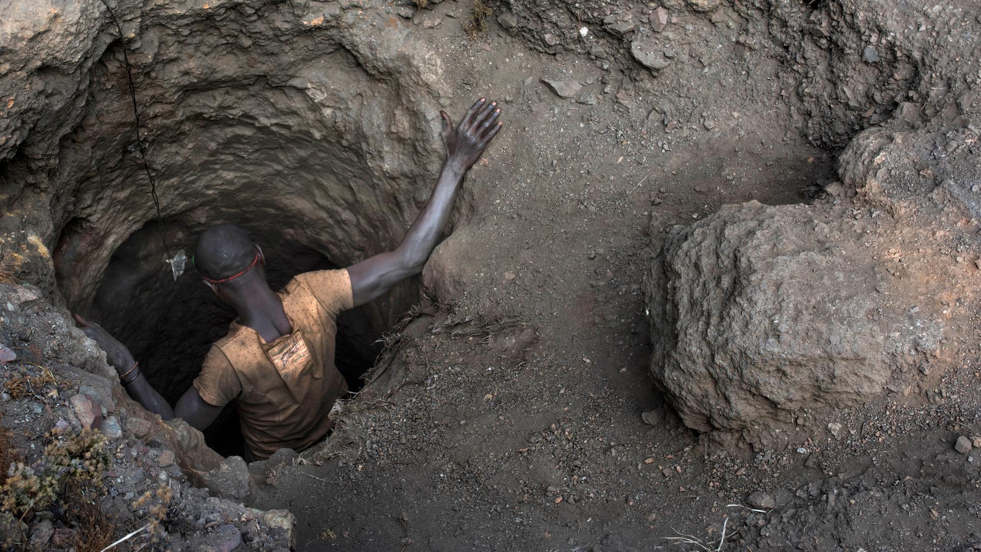 Rund zehn Prozent des geförderten Kobalts kommt aus dem sogenannten handwerklichen Kleinbergbau. Das bedeutet: Menschen graben mit Spitzhacken selbst Löcher. © Getty Images / The Washington Post / Michael Robinson Chavez
